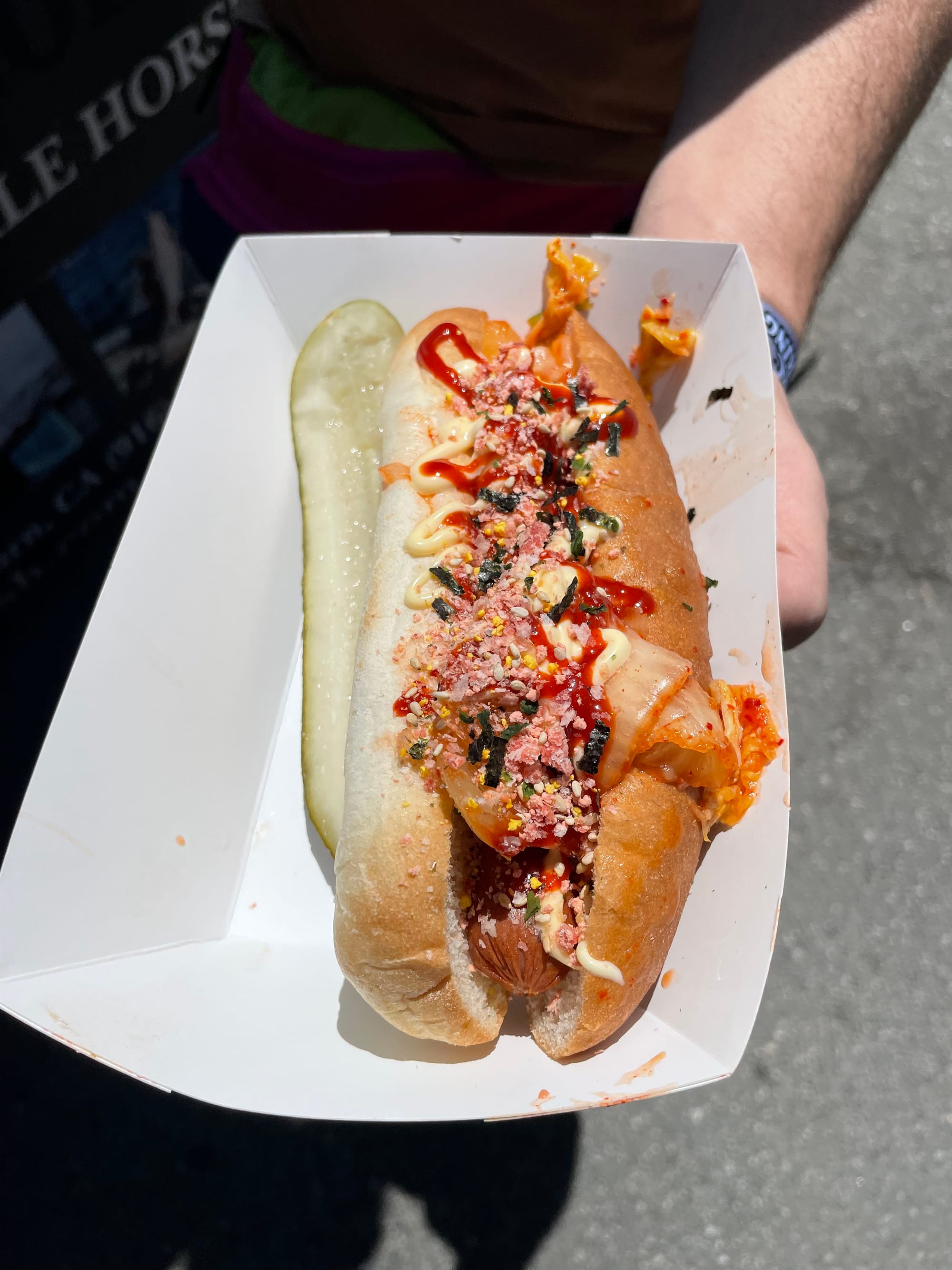 The Outer Sunset Farmers Market has a lot of fun hot food vendors to try, like our friends at Gumbo Social and the quirky Disco Dogs, which you may not have heard about unless you've been. At the latter, I love the Seoul Train, a hot dog with Kewpie, kimchi, gochujang, and shrimp furikake. They told me that they cater, and I think that Disco Dogs would be a fun vendor to engage for a party.