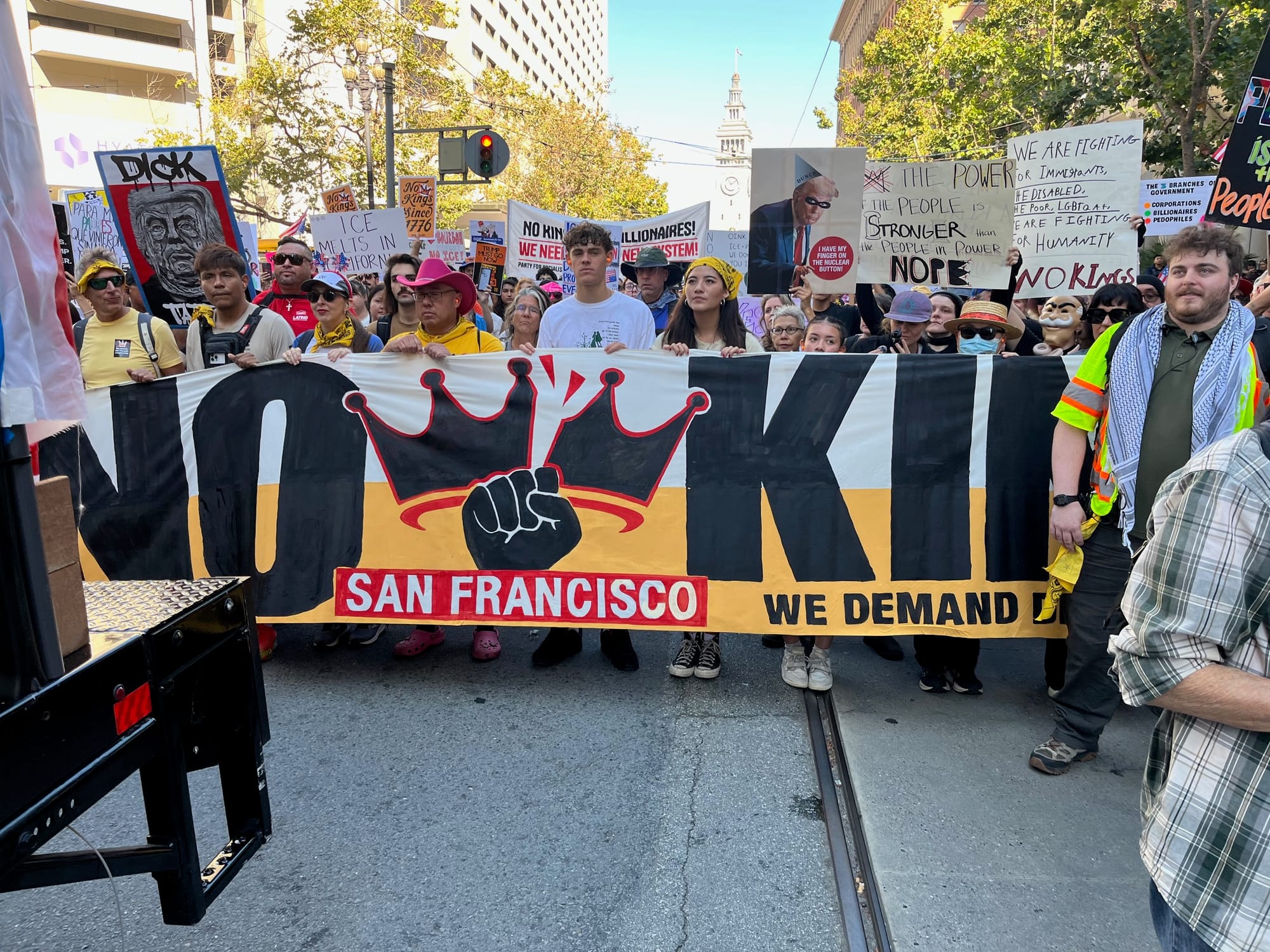 If not for Mike Johnson, they might have gone unnoticed among the wide range of people who showed up at the No Kings march.